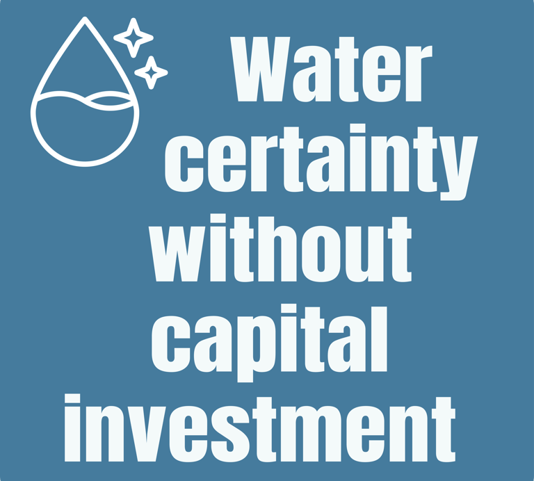 Water certainty no longer requires a heavy financial commitment. We design, build, and operate your water system, and you only pay for the water you use. No upfront costs. No risk. Just dependable water, always.